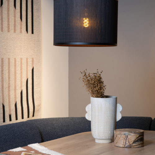 Pour le salon, pièce conviviale et de détente, l’idéal est de choisir un lustre suspendu utilisant des matériaux clairs : macramé naturel ou cannage en rotin. Vous avez la possibilité d’y ajouter des luminaires naturels en abat-jour fabriqué en bambou ou lin gris.