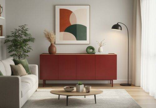 La clé du style : Gardez les murs neutres (blanc cassé ou gris perle) pour que le meuble Teulat devienne la véritable œuvre d’art du salon.