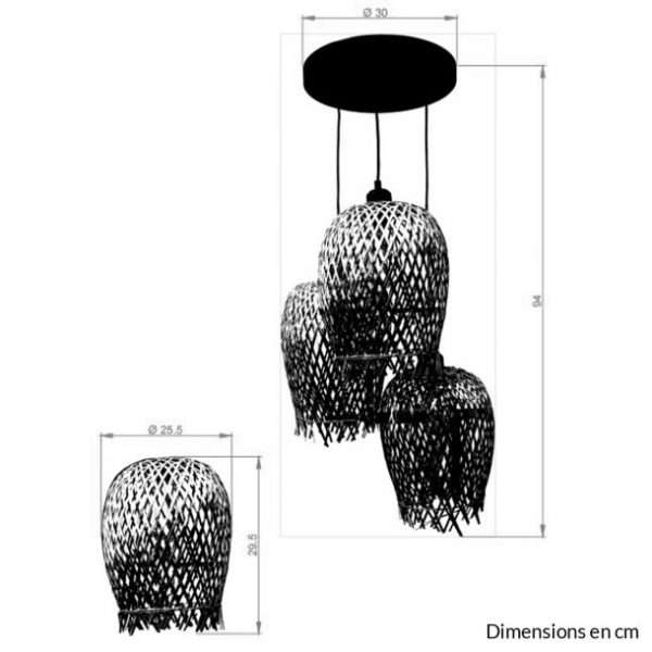 Un charme authentique et chaleureux, on adore cette superbe suspension cascade de la collection VAYLA. Conçue sur une structure en métal noir, elle possède trois points lumineux fabriqués en bambou naturel qui apporteront sans aucun doute une touche bohème tendance à votre décoration intérieure. Parfaite dans votre salon ou bien au-dessus de votre table à manger pour illuminer votre quotidien et vos moments de partage, cette belle suspension cascade accompagnera votre quotidien avec modernité et se mariera parfaitement dans votre aménagement intérieur. Notre astuce déco : optez pour de belles ampoules décoratives avec filaments et donnez une touche vintage à cette jolie suspension cascade VAYLA ! Luminaire équipé de trois douilles E27 compatibles avec trois ampoules d’une puissance maximale de 60W chacune, soit 3x60W (ampoules non incluses). Dimensions : hauteur totale minimum 94cm (hauteur réglable) x longueur câble 94cm x hauteur des abats-jours 20cm / 30cm / 50cm x diamètre 30cm. Existe également dans la même collection VAYLA en version suspension barre, suspension multiple ou bien pied de lampe.