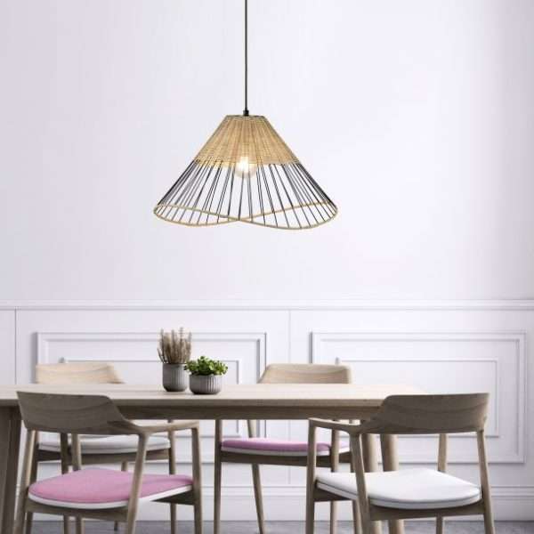 Cette sublime suspension Reed mélange avec beaucoup de style rotin et métal noir. Son abat-jour de 48 cm de diamètre présente un design wavy très agréable à l’œil qui dessine une vague. Avec sa structure filaire ajourée, l’abat-jour laisse deviner l’ampoule pour un effet déco très réussi : c’est pourquoi nous vous conseillons de choisir une ampoule à filament, et de température de couleur blanc chaud pour générer un éclairage doux et tamisé. Cette suspension nature à l’allure délicate saura trouver sa place dans votre intérieur avec un charme fou. Compatible avec une ampoule E27 LED. Hauteur réglable. A assortir dans la même série REED avec la lampe et le lampadaire.